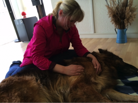 "Suzi er gigthund – MEN hun elsker når Christina kommer og giver hende massage ☺ smider sig på ryggen og er klar til massage når hun kommer ind ad døren. ☺ Det hjælper fantastisk på hendes gigt – hopper bedre ind i bilen og er tydeligt bedre tilpas. Kan klart anbefales."